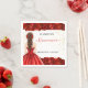 Elevate your celebration table with these elegant custom napkins, designed for a grand Quinceañera or Sweet 15. This sophisticated design features a stunning girl in a vibrant red ball gown, accented by lush red roses and a touch of gold glitter confetti.