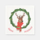 Ces serviettes en papier à thème festif de Noël habilleront n'importe quelle fête de Noël ! Elles arborent une aquarelle représentant un renne portant un foulard rouge et vert éclatant. Le renne est encadré par une couronne verte de Fêtes. Votre texte personnalisé est en rouge dans deux champs de texte en bas. L'image et le texte sont placés sur un arrière - plan blanc. Assurez-vous de voir les produits correspondants dans notre magasin.