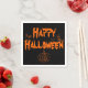 Une amusante serviette en papier de fête conçue par texto Halloween décorée de fantômes de bottes et d'un citrouille.