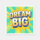 Bold inspirational quote retro bubble lettering bright yellow and blue colors.