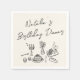 Comme vous voyez cette serviette unique et élégante pour dîner d'anniversaire a un modèle bien conçu. Avec la vaisselle de brunch à main noire de, bouquet floral, bougies, gâteau, bouteille de vin et verre, raisins, couteau et fourchette et nom manuscrit fantaisiste. Tout sur arrière - plan crème. Vous pouvez facilement customiser en cliquant sur le bouton de personnalisation.