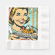 Maman de la bande dessinée de style pop art rétro tenant une assiette de graines citrouilles après avoir sculpté des citrouilles à Halloween. Mignonnes serviettes en papier pour une fête d'Halloween.