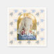 Retro graduation with grad caps in shades of blue and gray with white flowers against a light peach background. Colors can be customized to your choosing. Photo template via Pixabay licensed under CC0 and must be replaced with your own photo.
