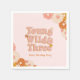 Mignons serviettes en papier "Young Wild and Three" pour une fête fleurie rétro. Ce design est composé d'un motif de fleurs sauvages fantaisistes, dans une palette de couleurs bohème, marron et terre cuite, beige, rose et jaune. Parfait pour les thèmes rétro et boho party au printemps et en été.