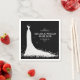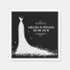Elégante robe de mariage en dentelle blanche avec arrière - plan noir et texte personnalisable blanc pour le design de serviettes en papier.