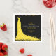 Elégante robe de mariage en dentelle jaune avec arrière - plan noir et texte blanc personnalisable pour porter des serviettes en papier design.