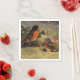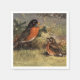 Il s'agit d'une belle et riche reproduction d'une peinture de l'artiste et ornithologue canadien Allan Brooks. L'oeuvre, qui ressemble à la vie, comprend deux Robins américains — un adulte (qui ressemble à un mâle) et un jeune. Ce détail fait partie d'une oeuvre originale de Brooks qui comprend également Varied Thrush.