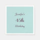 Un solide arrière - plan pastel robin bleu oeuf décore cette serviette en papier minimaliste du parti. Le texte est violet foncé. Bien que la valeur par défaut indique "45e anniversaire", vous pouvez facilement modifier le texte pour le nom, le nombre d'années et l'événement. Plaque papier correspondant est zazzle article 256331159637939570. Tous droits réservés © 2015 Alan & Marcia Socolik.