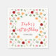 This beautiful and elegant napkin features watercolor red, pink and orange roses with foliage. The text combines handwritten script and serif fonts for a stylish and modern look. This is perfect for a summer rustic birthday party.
