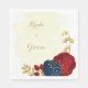 Serviette En Papier Romantique rouge foncé & bleu marine fleurs or
