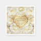 Belles serviettes en papier du 50ème anniversaire Mariage fleurie avec une profusion de roses blanches. La superposition est un coeur doré orné. L'art texte en or dit 50ème anniversaire de Mariage. La zone de texte inférieure est prête à être customisée par vous.avec les noms et les informations de date