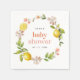 Serviettes de baby shower à thème agrumes avec couronne de citrons et fleurs roses. Personnalisez avec votre texte.