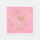 Serviettes italiennes 'ciao' rose et feuille d'or faux conçues pour être personnalisées rapidement et facilement selon les spécificités de votre événement.