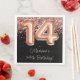 Rose or noir 14e anniversaire serviettes en papier pour décorer les tables de fête d'anniversaire.