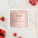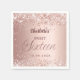 A modern, stylish napkin for a Sweet 16. Rose gold gradient background and the word Sixteen written with elegant large script letters in dark rose gold. Decorated with rose gold colored confetti. Personalize and add a name and date.