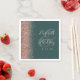 Le bord gauche de ces élégantes serviettes mariages modernes présente un design rose en faux parties scintillant or. Le texte personnalisable combine écriture rose rose et polices de caractères sur fond d'écran sur un grand écran sur un arrière - plan vert foncé.