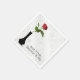 Une seule rose rouge dans un vase noir sur un arrière - plan damassé blanc chatoyant pour une réception de mariage, anniversaire, ou vow renouvellement. Les noms et la date du mariage peuvent être modifiés.