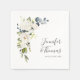 Design floral aquarelle de style contemporain avec une palette de couleurs neutres, cette serviette en papier a un beau bouquet en cascade de roses blanches et blanches, des hydrangées et des fleurs mélangées avec de la verdure. Personnalisez avec les noms de la mariée et du marié et la date du mariage. Cette conception est un choix merveilleux pour les réceptions de mariage, les fêtes de fiançailles et autres célébrations pour la mariée et le marié.