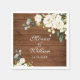 Serviette En Papier Roses blanches ivoire Verdure Bois rustique Mariag