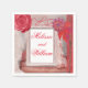 Les jolies serviettes de mariage rouges et rustiques sont parfaites pour votre cérémonie. Illustrer un design rustique rouge avec un cadre en bois avec le nom du couple est écrit dans l'image. Commandez dès aujourd'hui ! Design Napkin : WeddingsbyRhoadie Art Floral : Oberholster Venita