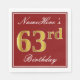 Serviette En Papier Rouge élégant, Faux Gold 63e anniversaire + Nom pe