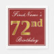 Serviette En Papier Rouge élégant, Faux Gold 72e anniversaire + Nom pe