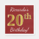 Serviette En Papier Rouge, Faux Gold 20e anniversaire + Nom personnali