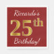 Serviette En Papier Rouge, Faux Gold 25e anniversaire + Nom personnali