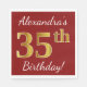 Serviette En Papier Rouge, Faux Gold 35e anniversaire + Nom personnali