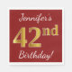 Serviette En Papier Rouge, Faux Gold 42e anniversaire + Nom personnali
