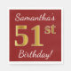 Serviette En Papier Rouge, Faux Gold 51e anniversaire + Nom personnali
