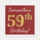 Ce simple design de serviette en papier comporte un message comme "59e anniversaire de Samantha !", avec le "59e" à l’allure fausse or, sur un arrière - plan de couleur rouge. Le nom peut être customisé. Il pourrait être utilisé à une fête d'anniversaire pour quelqu'un qui célèbre son cinquante-neuvième anniversaire. [~Z0000080]