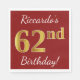 Serviette En Papier Rouge, Faux Gold 62e anniversaire + Nom personnali