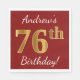 Serviette En Papier Rouge, Faux Gold 76e anniversaire + Nom personnali