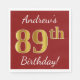 Serviette En Papier Rouge, Faux Gold 89e anniversaire + Nom personnali