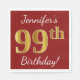 Serviette En Papier Rouge, Faux Gold 99e anniversaire + Nom personnali
