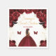 Cette serviette élégante et glamour en sweet sixteen présente une belle princesse aux cheveux brunes dans une robe de bal rouge foncé. Le texte combine écriture manuscrite et polices sans serif modernes pour un look élégant et sophistiqué. Les arrangements floraux, papillons et confettis d'or créent un mélange parfait de rustique et de chic. Graphiques par www.etsy.com/uk/shop/SunflowerDayLove