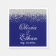 Une élégante serviette moderne avec un effet parties scintillant argent sur un riche arrière - plan bleu royal. Vous pouvez le personnaliser en cliquant sur le lien personnaliser. Cela fait partie d'une belle suite mariage assortie qui peut être entièrement personnalisée.