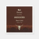 Country western cowboy manger boisson marié marron marron marron mariage réception cocktail serviettes. Crâne de taureau rustique. Joli, drôle rempli de faveurs de style ferme humour. Ancien style vintage sauvage ouest ancien design unique. Cool, animal de ferme branché. Personnaliser script et typographie. Copyright de l'image Marg Seregelyi Photography.