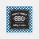 Les serviettes de wedding shower à thème décontracté BBQ / barbecue sont décorées dans un cadre noir, avec des polices occidentales et modernes, des touches d'étoile et une nappe recouverte de nappes bleu, blanc et bleu en vichy.