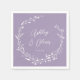 Cette élégante serviette en papier de mariage présente un bel arrière - plan lavande violet avec une couronne fleur sauvage dessinée à la main et une élégante typographie en blanc. C'est un design parfait pour un mariage rustique mais élégant et coordonne avec notre collection Rustic Fleur sauvage...Voir la collection pour plus d'articles!