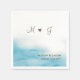 Vous recherchez une touche unique et spéciale à votre journée spéciale? Ces serviettes personnalisées avec initiales, noms et date du couple sur un arrière - plan d'impression aquarelle ajouteront une touche tendance et élégante à votre table. Ils sont parfaits pour les mariages, les fiançailles ou toute occasion spéciale et vous impressionneront. Commandez dès maintenant et améliorez votre décor de jour spécial avec ceux-ci. | personnalisation cocktail napperons en vrac zazzle | bleu poussiéreux élégants serviettes de cocktail personnalisées avec noms et date | serviettes et assiettes de mariage de plage d'été |