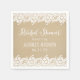 Les serviettes de réception de mariage sont en écriture "Fête des mariées" avec le nom de la mariée et la date de l'événement, une charmante conception de bordure illustrée de dentelle florale blanche, et un arrière - plan avec un aspect texturé en papier kraft rustique brun.