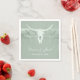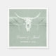 Rustique pastel vert sauge taureau blanc crâne de vache pays occidental cowboy mariage de mariage papier de réception serviettes de cocktail. Vintage ferme inspirée de la texture en mauvais état imprimé. Ancien style sauvage ouest antique. Cool, tendance, design animal de ferme moderne. Personnalisez votre script. Copyright de l'image Marg Seregelyi Photography.