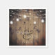 Créez votre propre bois rustique, bocal de mason mariage monogramme serviettes en papier - Noms monogrammes de mariée et de mariée en lettrage élégant avec une esperluette jumbo. Date de mariage personnalisée en bas. La moitié supérieure est décorée avec des lampes de jarre de mason suspendues rouillées et des lumières scintillantes romantiques de fée. Contre les planches de bois de grange rustique arrière - plan. Serviettes en papier monogrammé mariage rustique pour la fête de l'anniversaire du mariage, le dîner de la répétition de campagne, la douche nuptiale occidentale, ou pour la réception de mariage. Compléments mariages de grange, mariages rustiques, mariages extérieurs, styles mariages de l'ouest du pays, et thèmes mariages de bocal de mason. Visitez notre boutique Zazzle.com/angela65 pour plus de serviettes et de décors en papier mariage rustiques.