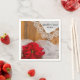 Customisez les charmantes serviettes en papier de mariage Rustic Poinsettia et Lace Country Winter Wedding avec le nom personnel de la date de mariage de la mariée et du marié et du ranch rural thème. Ces serviettes jetables personnalisées, décontractées et de grande classe, sont ornées d'une photographie florale d'une fleur rouge de décembre poinsettia, d'un voile de mariée blanc et d'une dentelle vintage parée d'un mouchoir en lin blanc crème avec un arrière - plan en bois de grange brun.