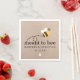 Serviette en papier avec illustration abeille avec "destinée à être" dans la typographie classique superposant le papier kraft.