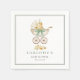 An elegant baby shower napkin featuring a vintage baby carriage filled with soft yellow florals and tied with a sage green bow. The double-border frame and classic typography give this design a timeless, sophisticated feel. Personalize with the mom-to-be’s name and shower date for a beautiful custom touch.
