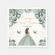 Cette serviette élégante et glamour en sweet sixteen présente une belle princesse aux cheveux brunes dans une robe de boule verte sauge. Le texte combine écriture manuscrite et polices sans serif modernes pour un look élégant et sophistiqué. Les arrangements floraux, papillons et confettis d'or créent un mélange parfait de rustique et de chic. Graphiques par www.etsy.com/uk/shop/SunflowerDayLove