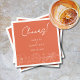Ce Cheers Verona Sunset Elegant Orange Floral Mariage Cocktail Napkin présente des fleurs d'art de ligne délicates sur un arrière - plan orange vibrant, complétées par la typographie contemporaine et la calligraphie de script. Il est entièrement personnalisable avec les noms du couple et la date du mariage.